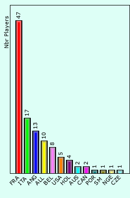 Cast of players per nationality