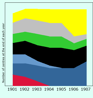 | Number of centres at the end of each year |