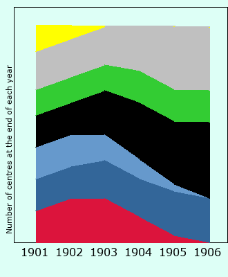| Austria | 5 | 7 | 7 | 4 | 1 | 0 | | England | 5 | 5 | 6 | 6 | 7 | 7 | | France | 5 | 5 | 4 | 3 | 1 | 0 | | Germany | 5 | 5 | 7 | 9 | 10 | 12 | | Italy | 4 | 4 | 4 | 5 | 5 | 5 | | Russia | 6 | 6 | 6 | 7 | 10 | 10 | | Turkey | 4 | 2 | 0 | 0 | 0 | 0 |