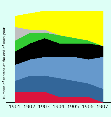 | Austria | 4 | 4 | 4 | 2 | 2 | 2 | 0 | | England | 4 | 6 | 6 | 7 | 6 | 5 | 5 | | France | 6 | 6 | 7 | 8 | 9 | 9 | 12 | | Germany | 5 | 6 | 7 | 5 | 5 | 6 | 4 | | Italy | 4 | 4 | 2 | 3 | 2 | 1 | 0 | | Russia | 5 | 1 | 1 | 0 | 0 | 0 | 0 | | Turkey | 4 | 6 | 7 | 9 | 10 | 11 | 13 |