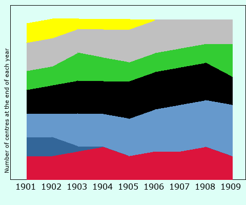Number of centres at the end of each year |