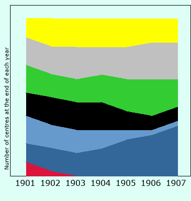 | Austria | 3 | 1 | 0 | 0 | 0 | 0 | 0 | | England | 4 | 5 | 5 | 6 | 8 | 9 | 11 | | France | 6 | 5 | 5 | 4 | 2 | 1 | 1 | | Germany | 5 | 6 | 6 | 6 | 4 | 3 | 3 | | Italy | 6 | 5 | 5 | 6 | 7 | 8 | 6 | | Russia | 6 | 6 | 7 | 6 | 7 | 8 | 8 | | Turkey | 4 | 6 | 6 | 6 | 6 | 5 | 5 |