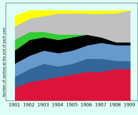 | Number of centres at the end of each year |