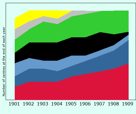 | Austria | 5 | 7 | 7 | 7 | 9 | 10 | 11 | 12 | 14 | | England | 4 | 5 | 5 | 4 | 4 | 5 | 6 | 7 | 9 | | France | 5 | 4 | 3 | 4 | 4 | 2 | 2 | 2 | 2 | | Germany | 4 | 6 | 7 | 7 | 7 | 7 | 7 | 4 | 1 | | Italy | 5 | 5 | 8 | 7 | 8 | 9 | 8 | 9 | 8 | | Russia | 4 | 3 | 2 | 2 | 2 | 1 | 0 | 0 | 0 | | Turkey | 4 | 4 | 2 | 3 | 0 | 0 | 0 | 0 | 0 |