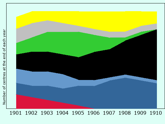 | Number of centres at the end of each year |