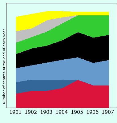 | Number of centres at the end of each year |