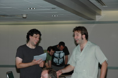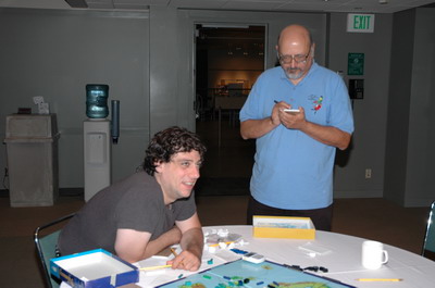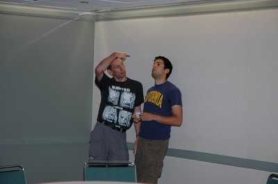 Chris and Matt are watching the laptop to see the WDD Battle. Everybody seems to like it. |