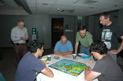 Around the board from left to right : Lionel Levine, Edi Birsan, Matt Shields, Chris Brand, Eric Mead. Our dear Buz sets the clock. |